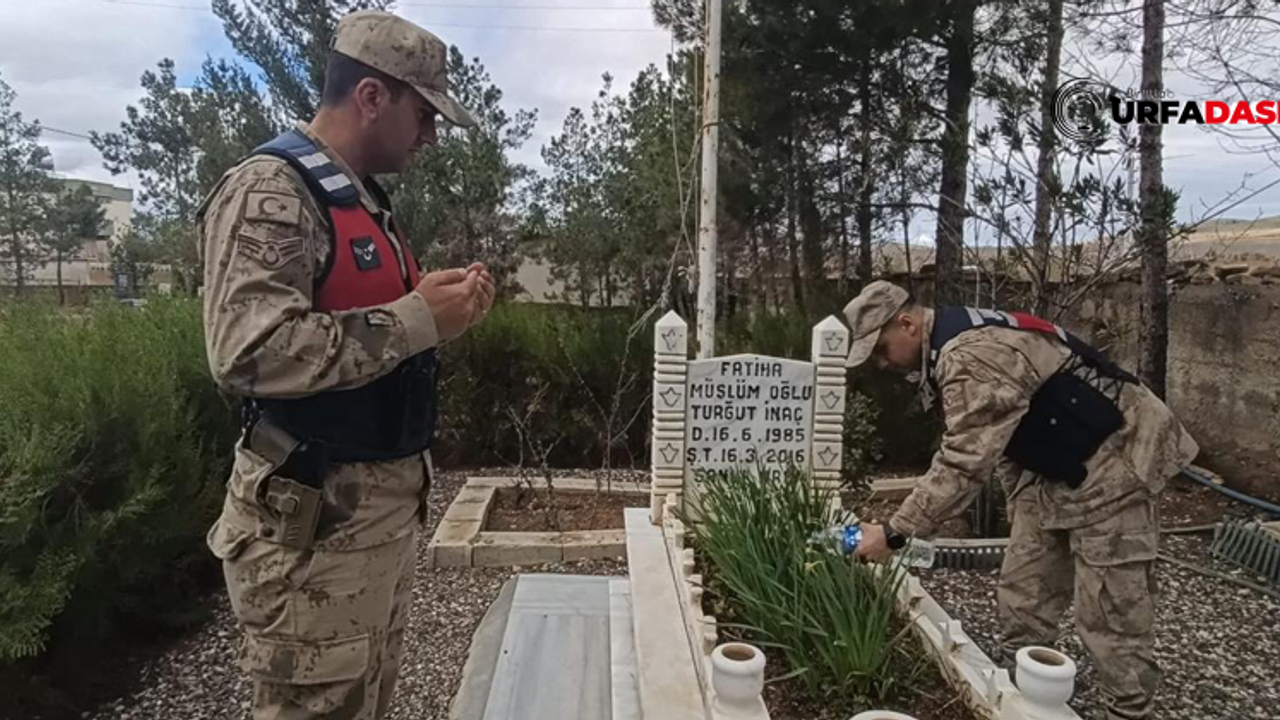 Şanlıurfa'da jandarma ekipleri, Ramazan Bayramı dolayısıyla şehitlerin kabirlerinin bakım ve onarımını yaptı.