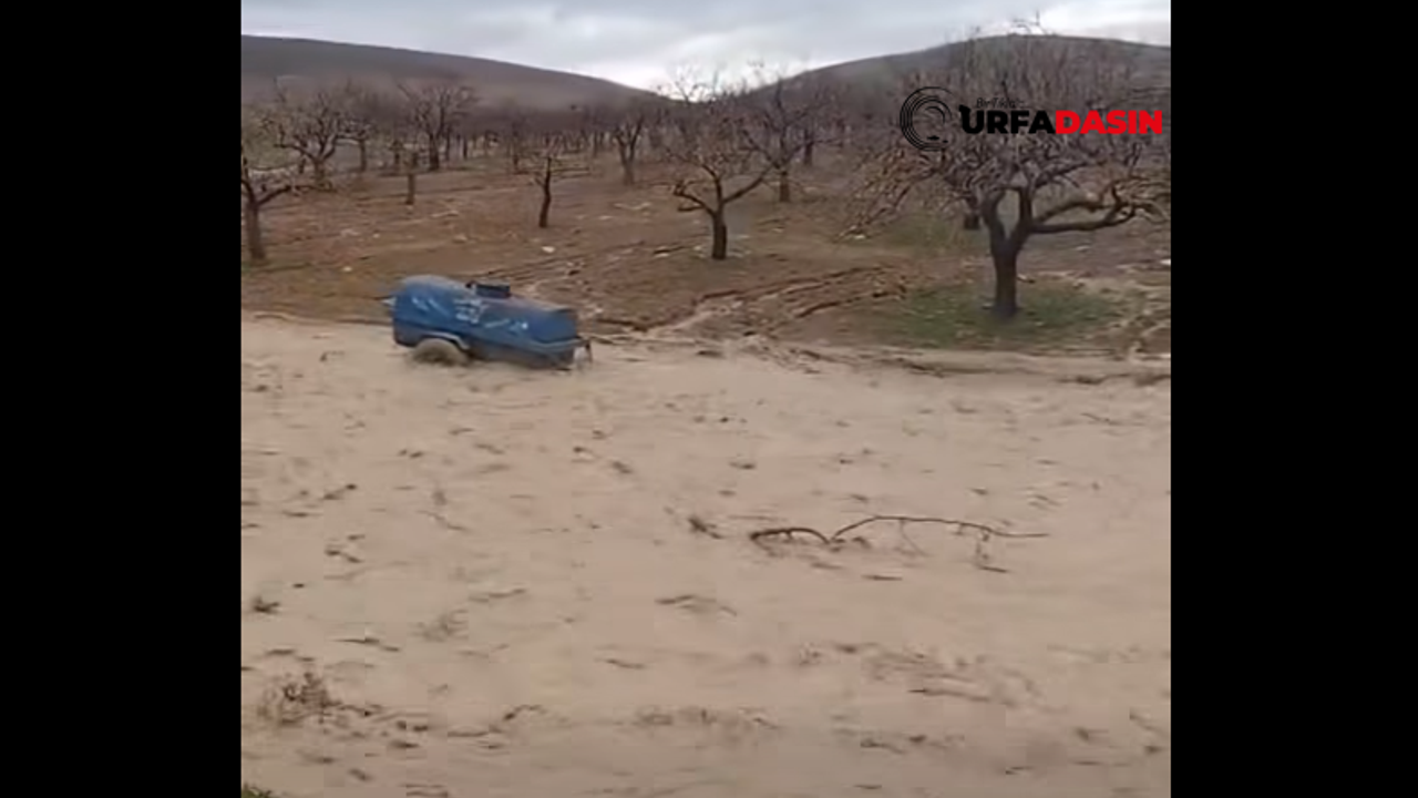 Görüntülere yansıyan olayda bir ilaçlama makinesinin dere suyuna kapılarak sürüklendiği görüldü.