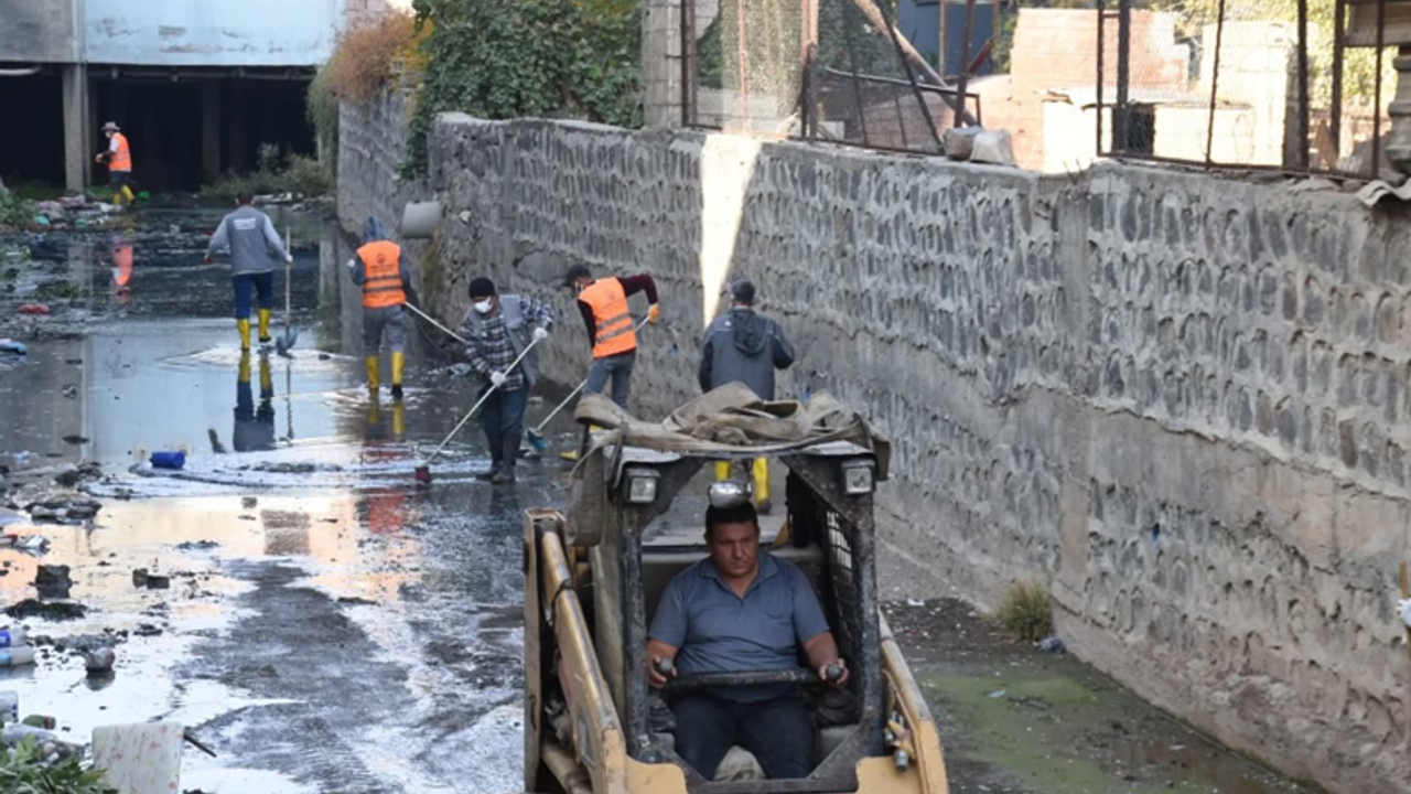 Dere yatağında oluşan kirlilik ve beraberindeki sağlık risklerini ortadan kaldırmayı amaçlayan temizlik ekipleri çalışmaları titizlikle sürdürüyor.