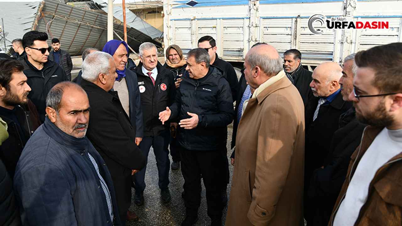 Şanlıurfa Valisi Hasan Şıldak, çatıları çöken İmam Keskin Buğday Pazarı, Meyve ve Sebze Hali, Şireciler ve Fıstıkçılar Halindeki esnafı ziyaret etti.