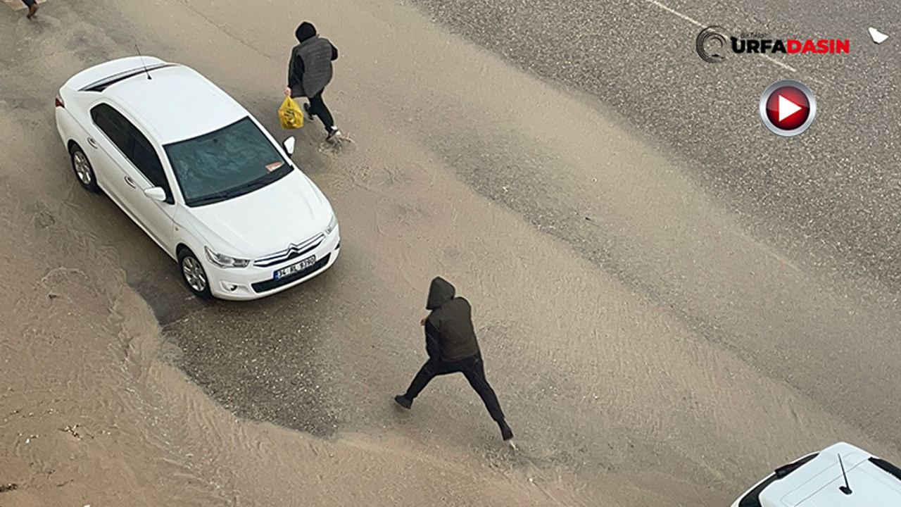 Karaköprü ilçesi Çardaklıkaya Bulvarı'nda yolun kenarında oluşan su akıntıları nedeniyle vatandaşlar yolun karşısına geçmekte zorlandı.