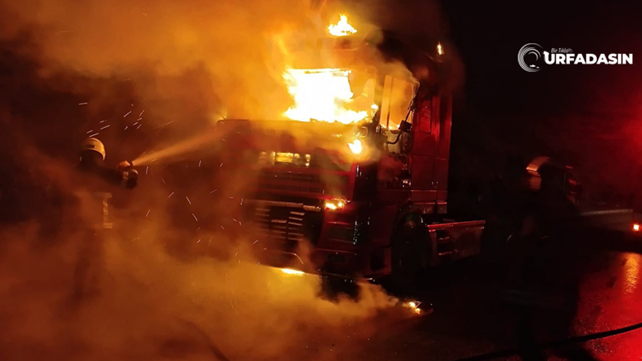 63 K 3041 Plakalı Tır’ın ön dorsesinde başlayan yangını fark eden sürücü aracı yol kenarına çekerek itfaiyeden yardım istedi.