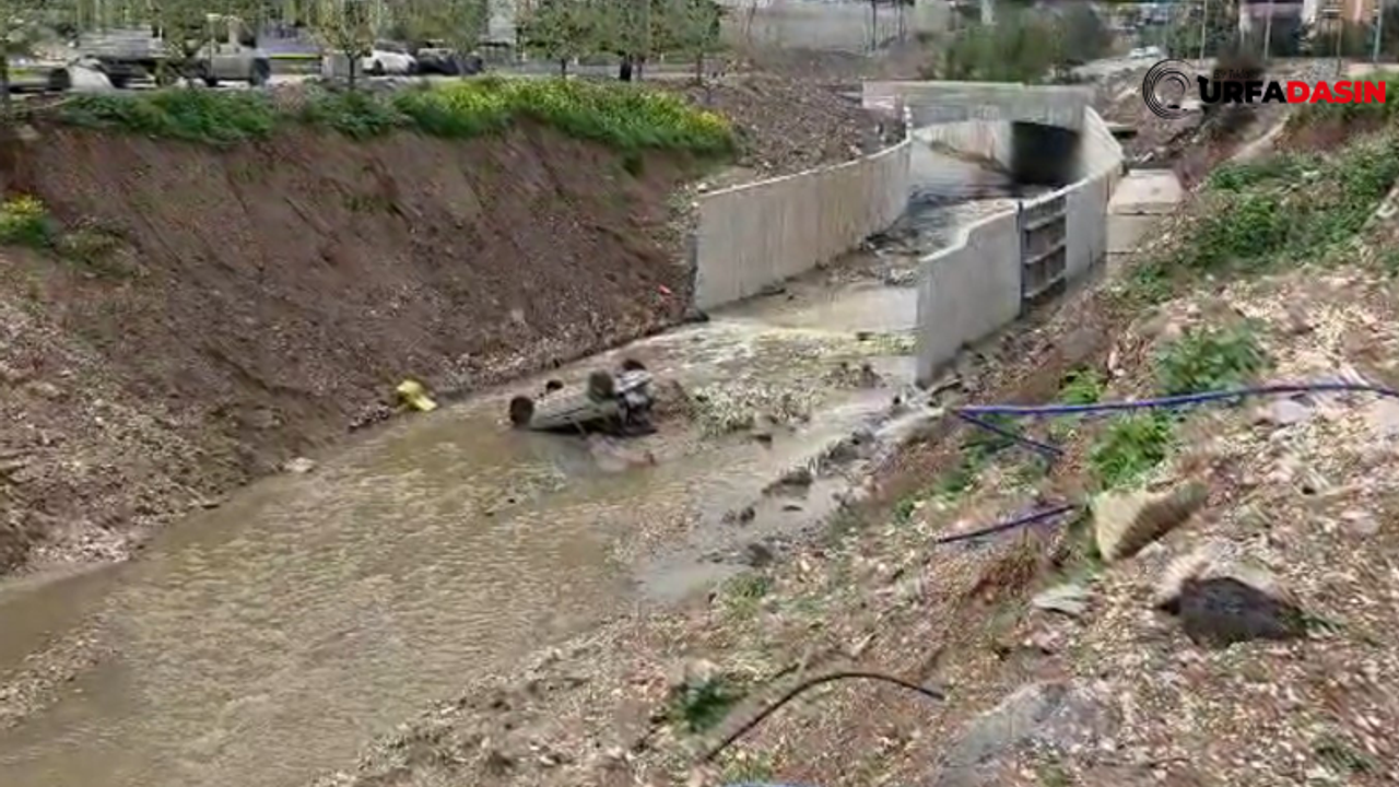 Hasar meydana gelen otomobilin dereye düştüğü anlar çevredeki güvenlik kameralarına yansıdı.