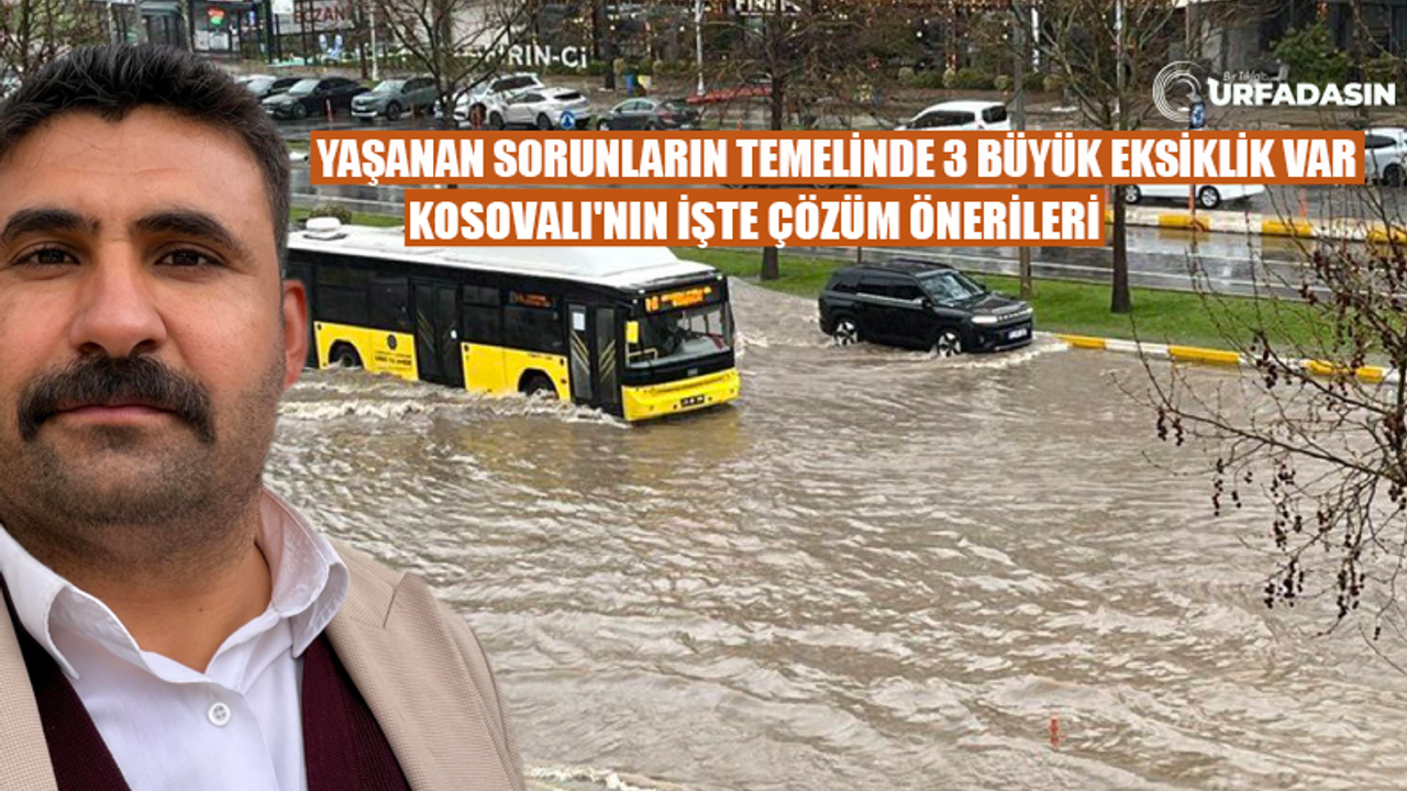 Şanlıurfa’da yaşanan sorunların temelinde üç büyük eksiklik olduğunun altını çizen bağımsız siyasetçi Halil Kosovalı, bunlarında yetersiz ve eski altyapı, şehrin mevcut yağmur suyu hatları, ani ve yoğun yağışları taşıyacak kapasitede olmaması, yıllar önce planlanmış sistemin, büyüyen şehir karşısında çöktüğünü, yağmur suyu ve kanalizasyonun birleşik olduğunu,